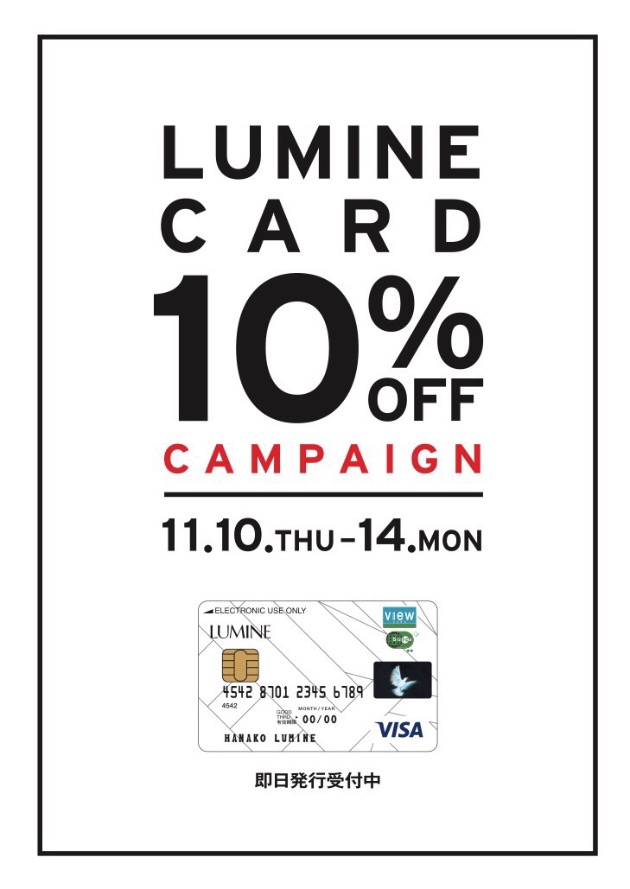 明日11/10(木)から14(月)に開催されますルミネカード10%OFFキャンペーン!