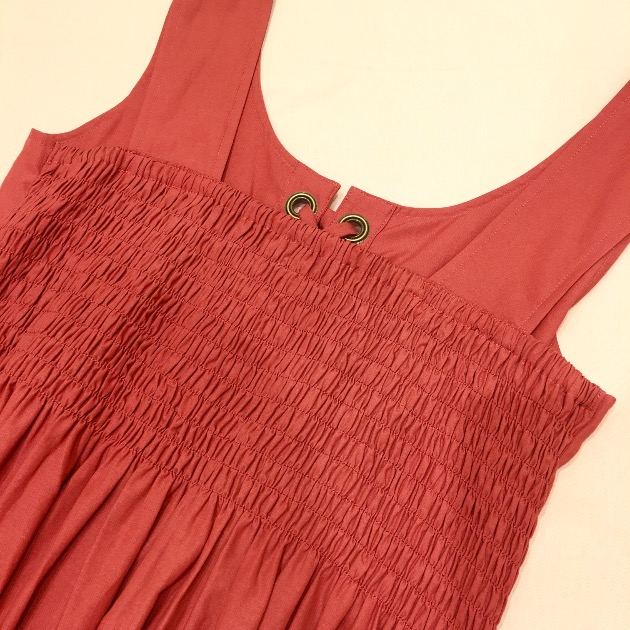 バックはシャーリングゴムを施してあり、着用がし易い仕様。