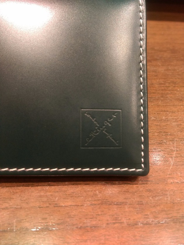 前面のカード入れが弧を描いてカッティングされているのは、創業当初のディテールを復刻している為。