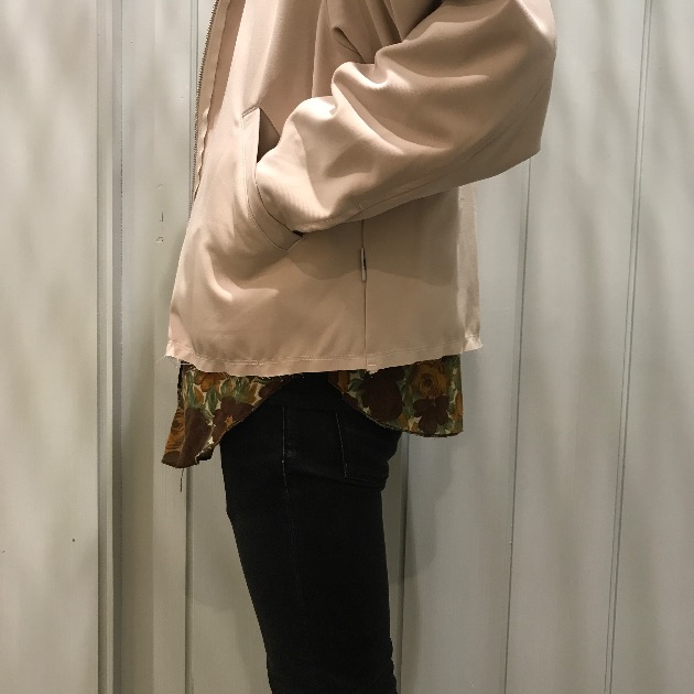 ポリエステルベネシャン素材を使用したルーズフィットのジップブルゾンが入荷しました。