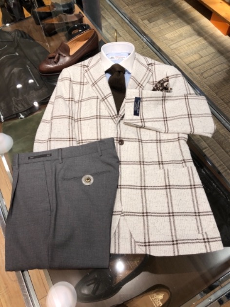 オフホワイトにブラウンの格子が入っていて落ち着いたトーンです。