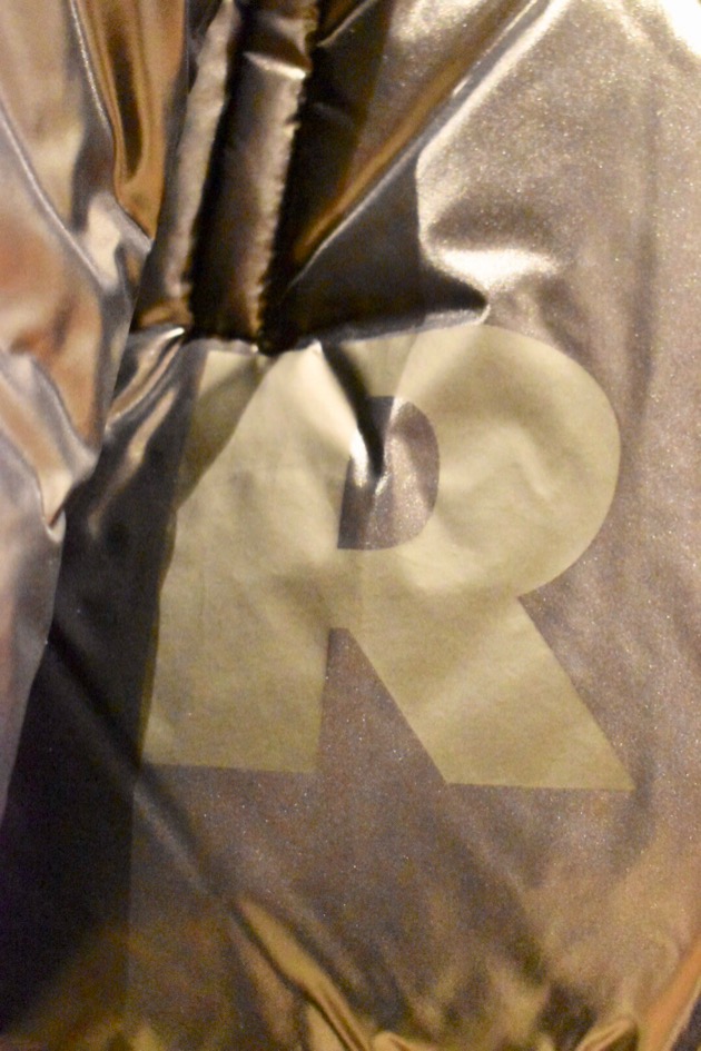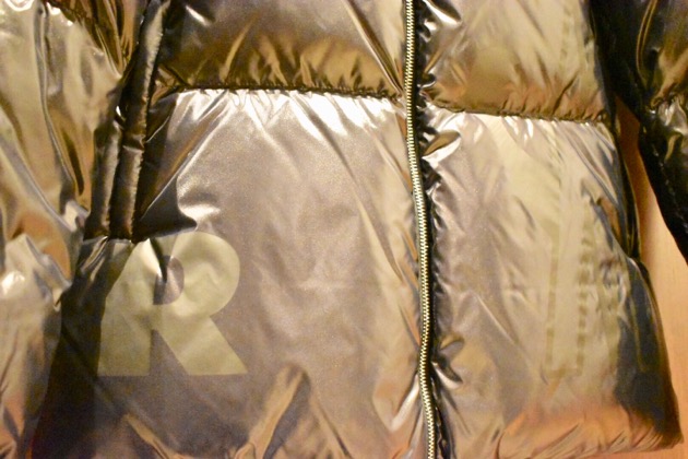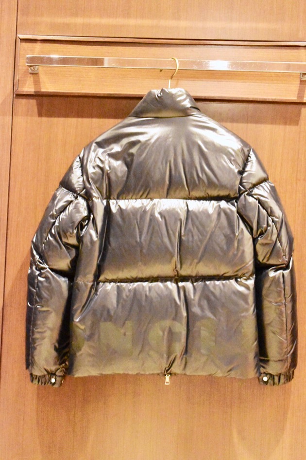 シルエットは立ち襟のショート丈、ダウンキルティングの幅がとても広い大胆なモデル。