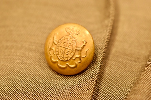 ピークドラペルに腰ポケットはフラップ付きのディテール。