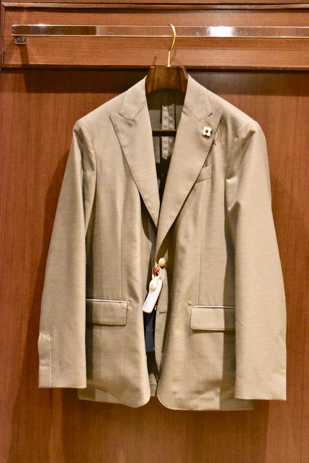 <LARDINI>グレージュカラーのピークドラペルジャケットです。
