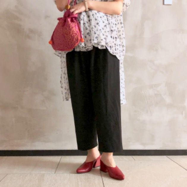 ブラウスとトラウザーパンツをコーディネートすると、このようなスタイリングに☆