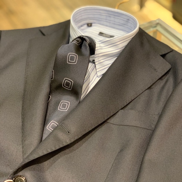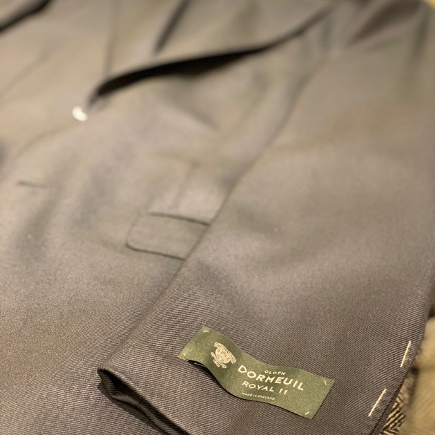 名門<DORMEUIL>社のウールギャバを使用。しなやかで光沢も上品。高級感もあります。個人的にオリジナルスーツの中で今シーズン買うのであれば、この一着かなと思っていた所です。