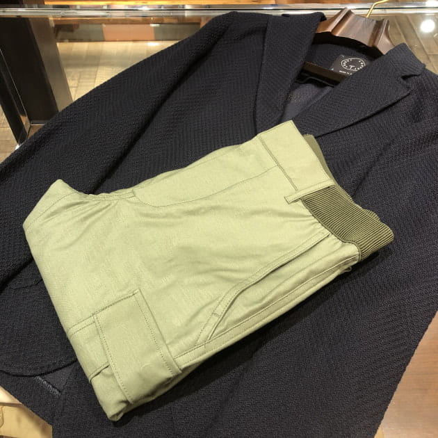 パンツの生地もストレッチが効いているのでかなり楽に履いていただける一本ですよ。