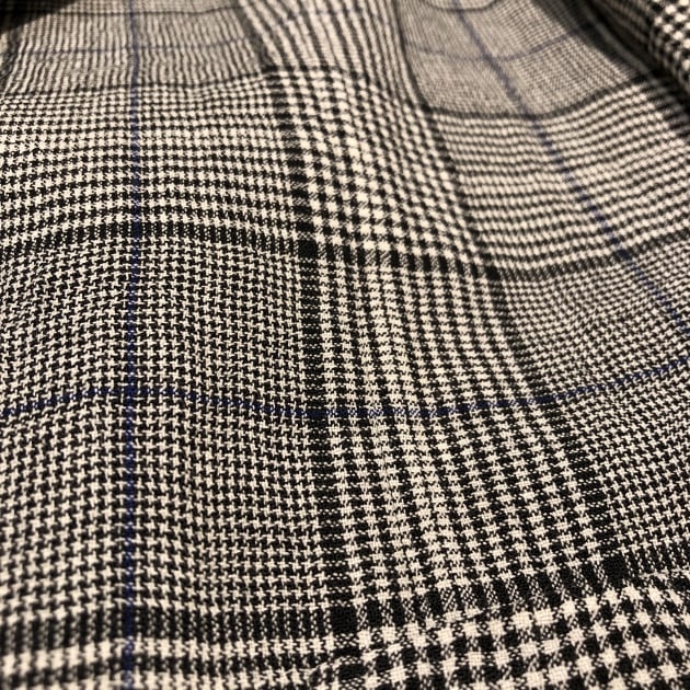 モノトーンのグレンチェックにブルーのペーンが入っております。