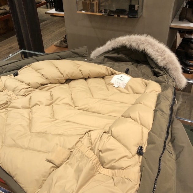 ブラックやネイビーと言った都会的な色が多いダウンですが、何とも言えない色合いで洒落ています。