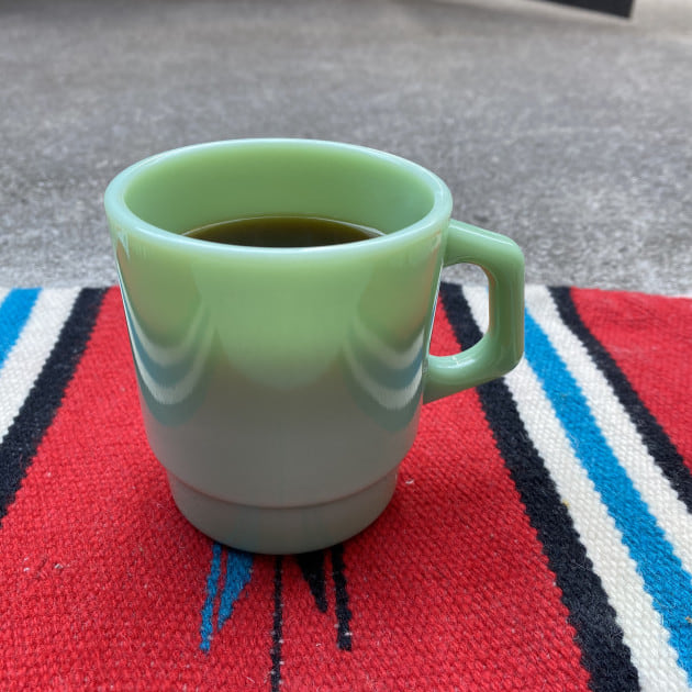 作業にはコーヒーも欠かせない派なのでファイヤーキングのスタッキングマグを愛用している坂本でした。