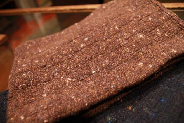 ブラウンにオレンジやサックス、ホワイトなど様々なカラーネップがはいります。