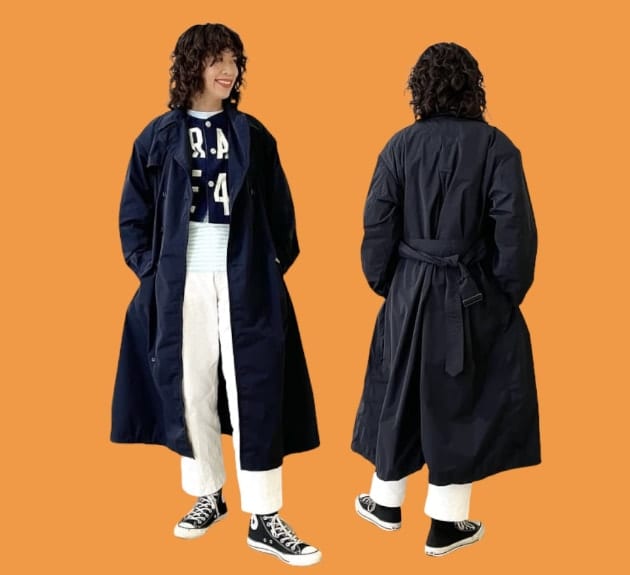 トレンチコートデザイン、ゆったりシルエットが通勤にもお勧めなアイテムです!