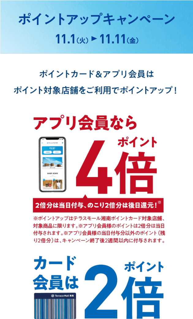 テラスモール湘南は2011年11月11日11時に誕生し、11周年を迎えます。 11月1日(火)より、日頃の感謝の気持ちを込めて「11th Anniversary」を開催します。