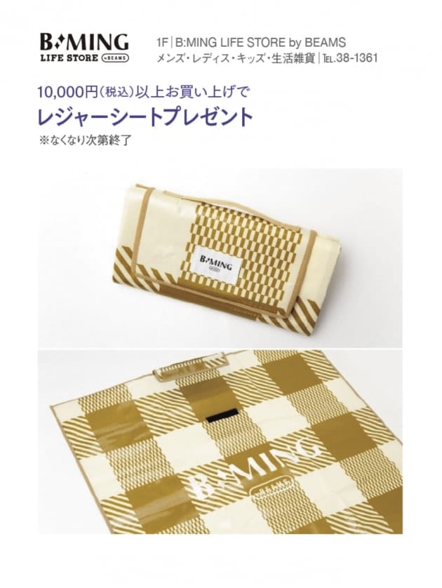ちなみに1Fの、ビーミング ライフストア by ビームス テラスモール湘南店ではレージャーシートを税込10,000円以上ご購入のお客様へプレゼント!