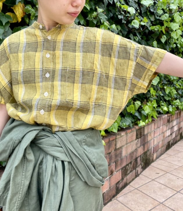 BEAMS BOY / リネン チェック スタンドカラー シャツ