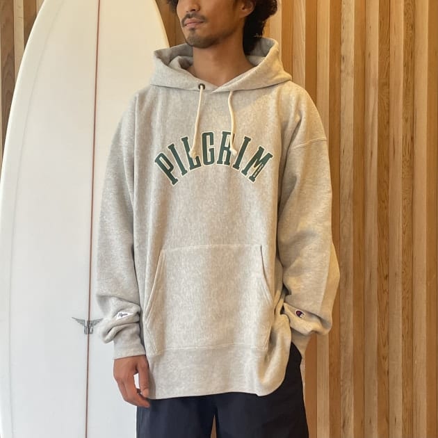 2023SSで高評だった<Champion>×<Pilgrim Surf+Supply>Tシャツのフーディ版。