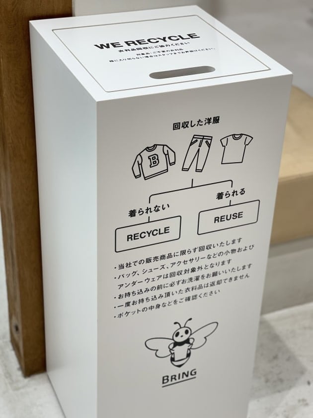 不要になった衣料品を回収するBOXを2022年の11月より店舗に設置。