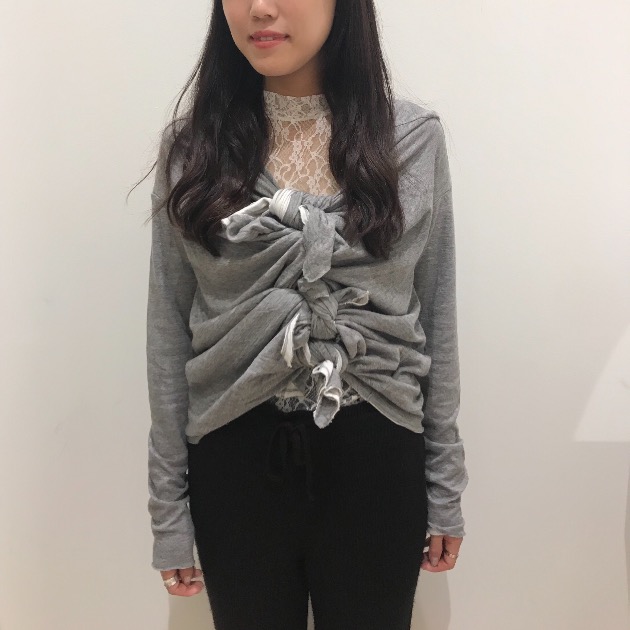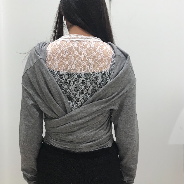前後逆に着用し、カシュクールのようなバックスタイルをつくってます。
