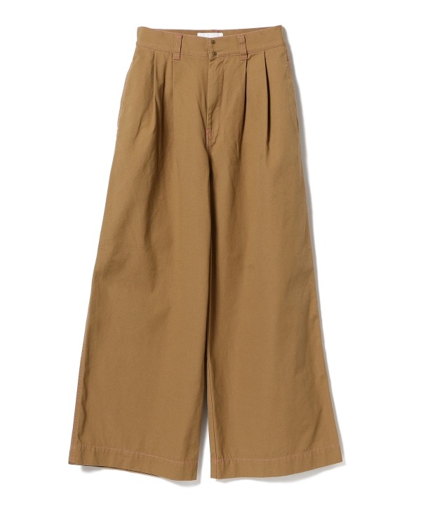 ウエスト部分にはプリーツを2ヵ所配し、腰から落ちる綺麗なバギーシルエットを再現しました。それぞれステッチにはカラフルな色を採用し、程よくコーディネートのアクセントになるひと品。