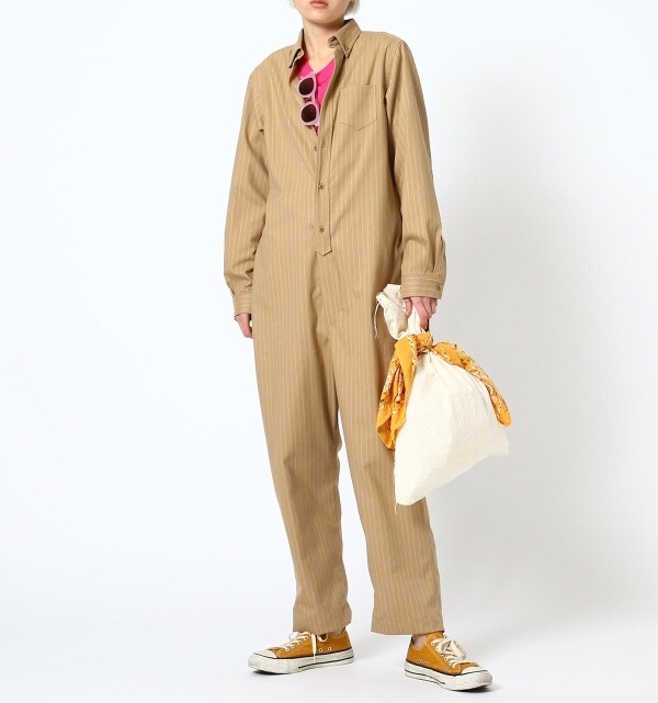 ボタンダウンとスラックスのスーチングのようなオールインワンです。