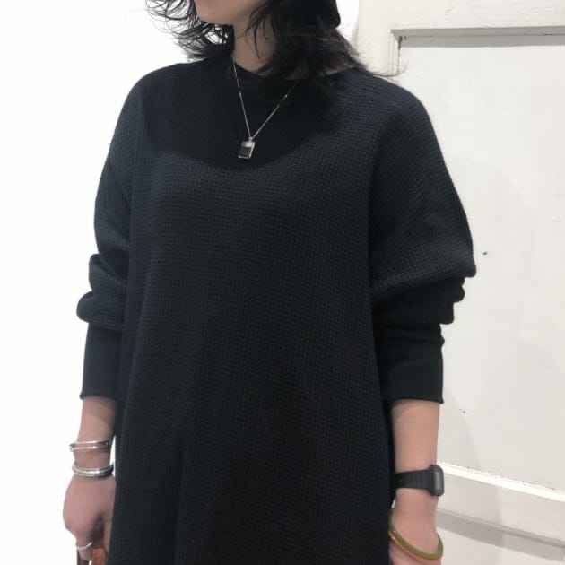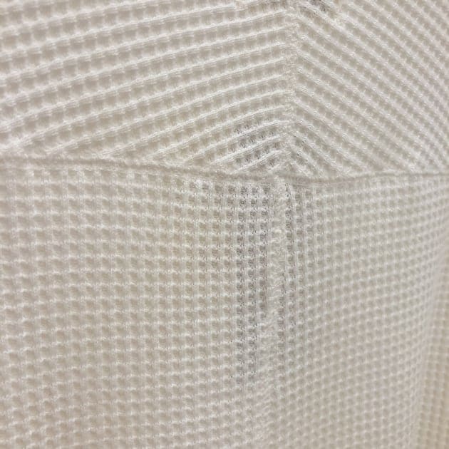人気のワッフル素材より、NEWアイテムの登場です。今来たいサイズ感で縫いのディテールにもこだわりました。