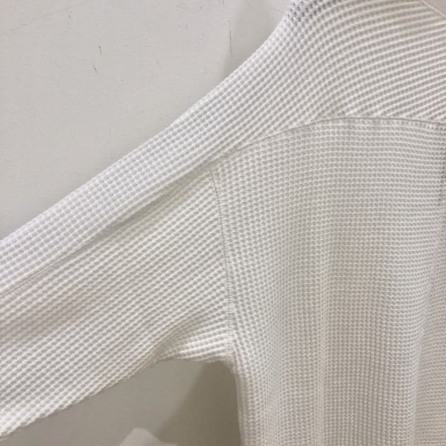 人気のワッフル素材より、NEWアイテムの登場です。今来たいサイズ感で縫いのディテールにもこだわりました。