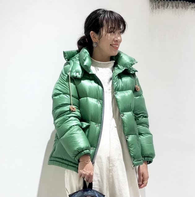 WHITEのオーバーオールにGREENが映えるスタイリングです!
