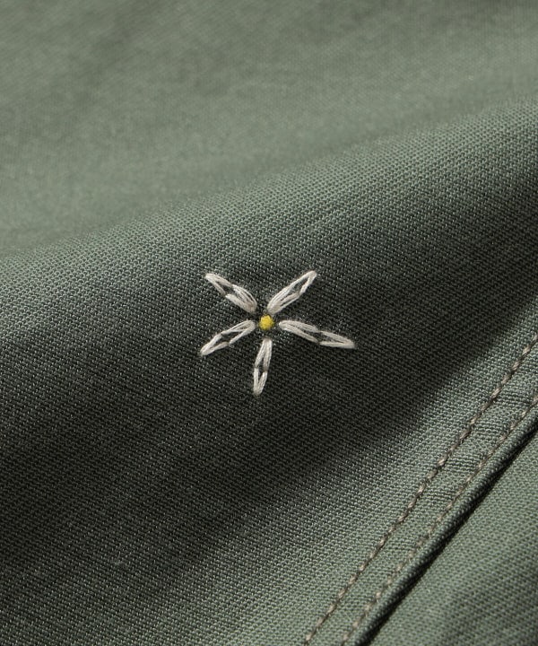 素材もバックサテン素材なので洗う事で経年変化を楽しめ1番オススメポイントのフラワー刺繍が可愛すぎますね!