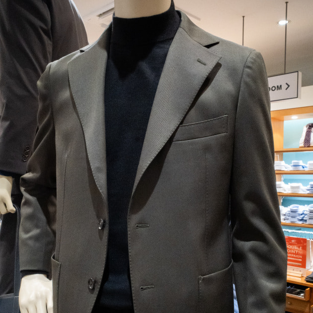 モックネックニットならタートルネックほど重くなく、クルーネックよりラフになり過ぎない印象になります。