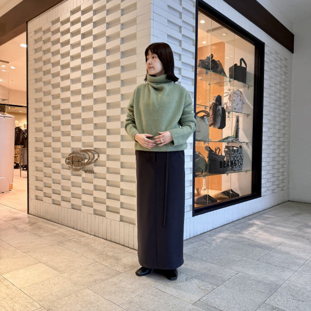名前の通り、芝生のような綺麗なグリーンカラーです。明度が高く爽やかなカラーに少しくすみのある落ち着いた大人の色合いです。暗くなりがちな秋冬の着こなしを上品に華やかに見せてくれます。