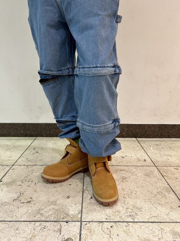 ペインターパンツは、Y2Kの要素も加えたデタッチャブル仕様で3段階のレングス変更が可能でございます。
