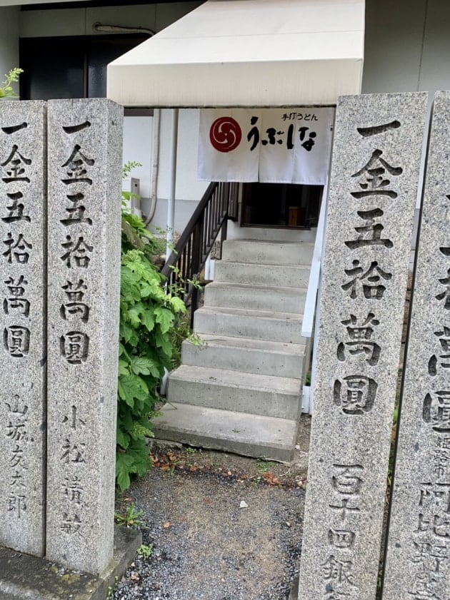 コチラの鳥居の横にあるうぶしなさんはコチラの宇夫階神社の神主さんが大将を務めてらっしゃるうぶしなうどん、先程の暖簾をくぐると奥に店舗があります。