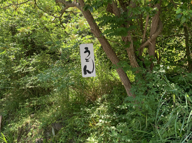 山道をお店に向かっていると「うどん」の看板…夜は絶対に通りたくないです笑