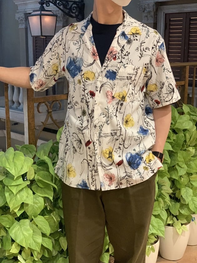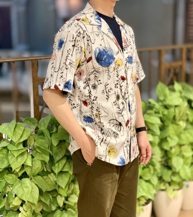 接客させて頂いたお客様のお話を聞くと、4月に入ったので、やはり新しいアイテムや春夏へ向けてのアイテムが欲しい!という気持ちのお客様が多く、こちらのオープンカラーシャツを気に留めて頂けてるみたいです。