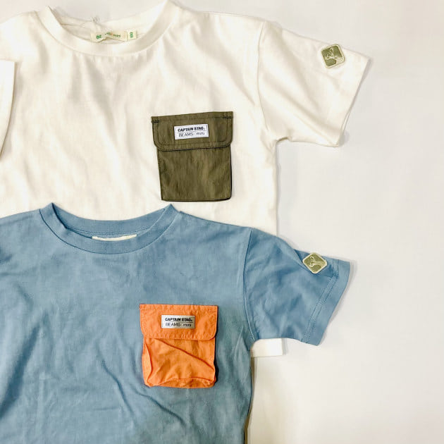 まち付きの胸ポケットが付いていて、カジュアルスタイル好きな親御さんにも喜ばれるアイテムです♪