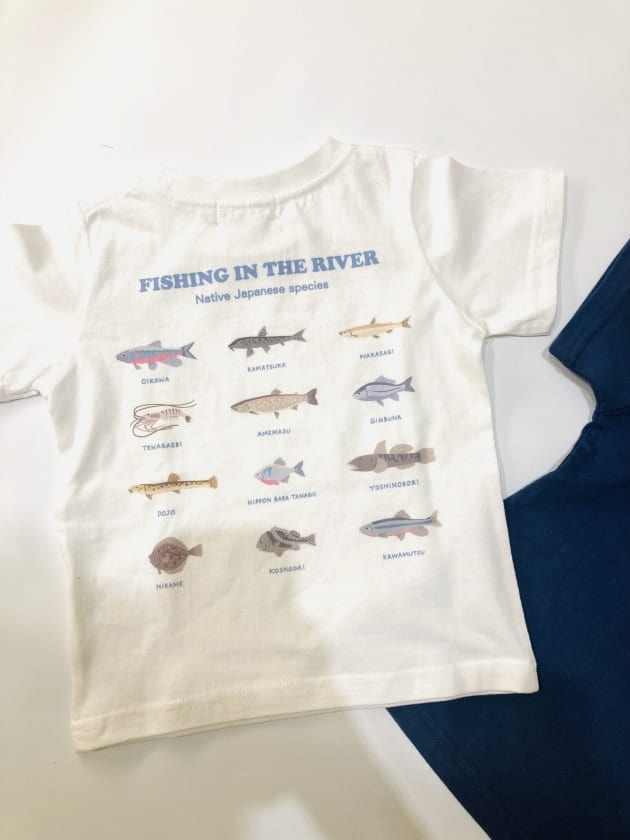 背中側には、川魚さんたちが描かれたとってもcuteなデザイン♪
