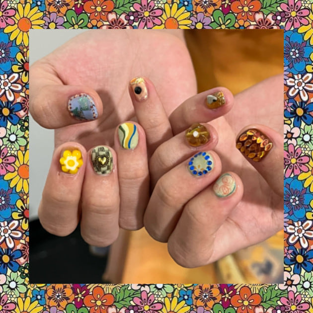 最近はヒッピーなスタイルにハマっているので、ヒッピー風ネイルです!