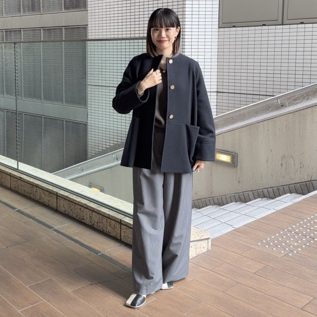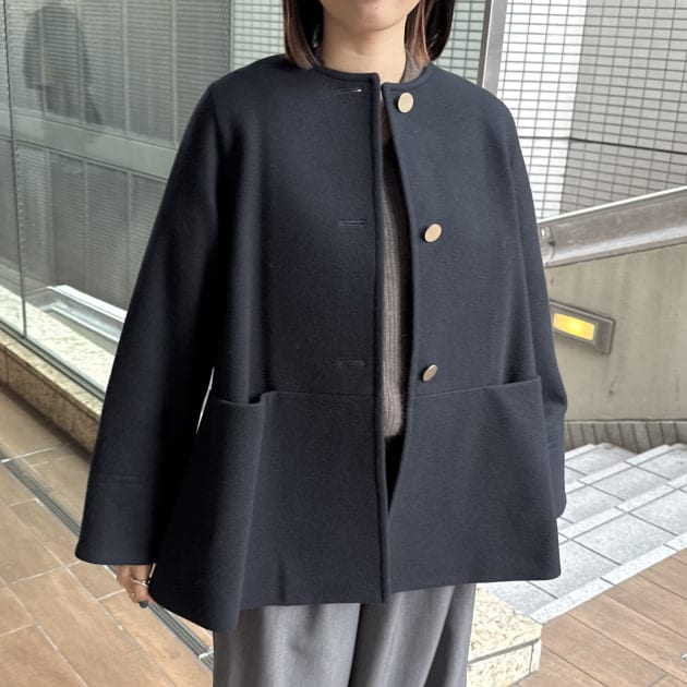 ノーカラーデザインなので、タートルネックやボリュームのあるストールを合わせたスタイリングが特に映え、冬の着こなしを洗練させてくれます。