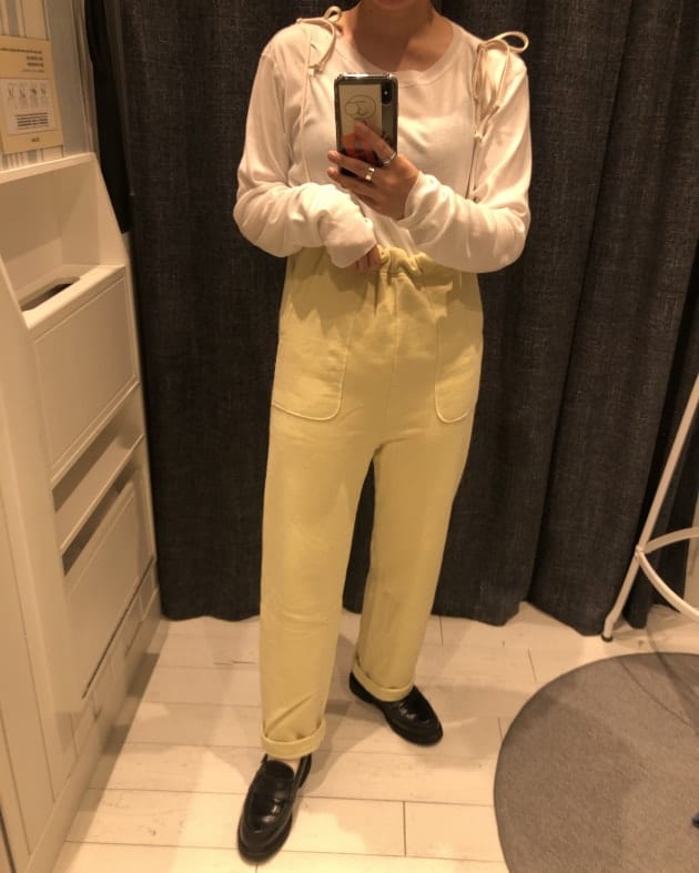 じゃーん!!!サイドの紐を肩に結ぶ事でサロペットの様にも着ていただけます〜!メチャメチャイイジャン。