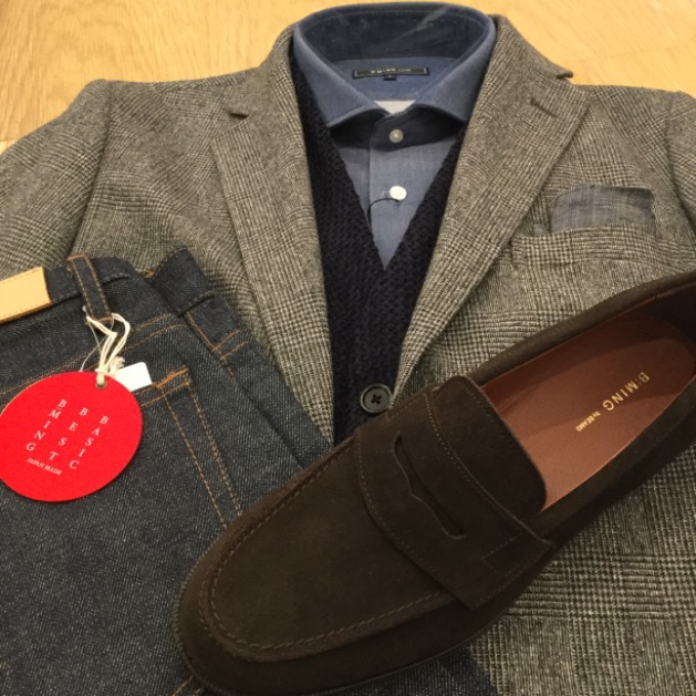 ショールカラーのカーディガンをねじ込んでみましたなコーディネート。