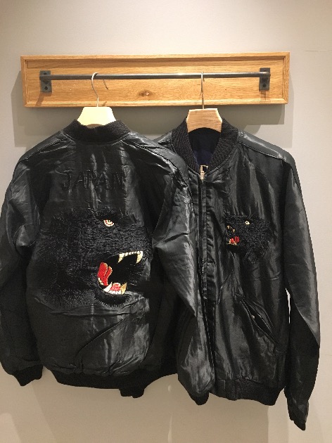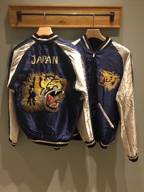 滑らかで光沢感のあるアセテートを両面に使用したリバーシブルタイプのスカジャン。