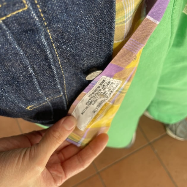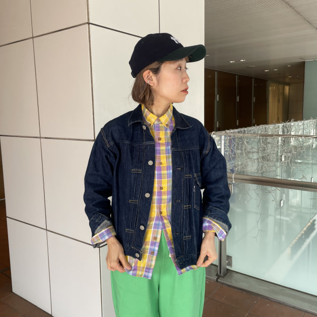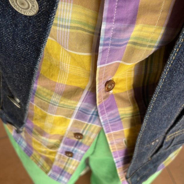 こちらはポップなカラーリングのチェックボタンダウンシャツです。