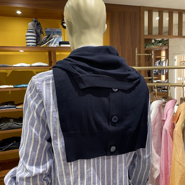 上の写真のような巻き方だと、ボタンの存在感も効いてきますね!