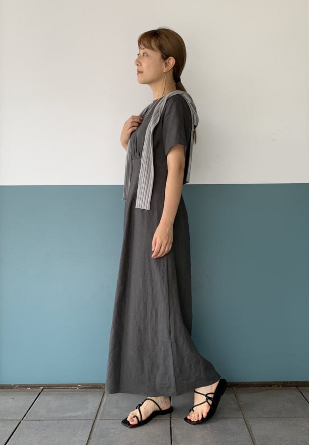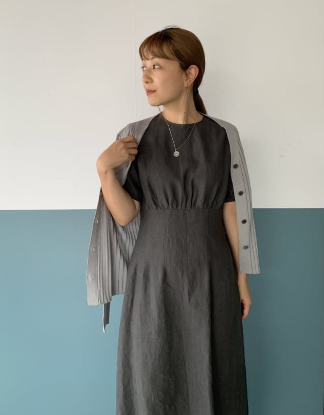 Demi-Luxe BEAMS / リネン ハーフスリーブワンピース