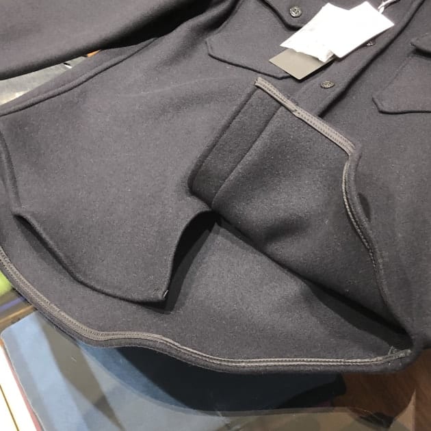裾まわりには、パイピングが施されており、着用した時のペラっと感もなくアウターとしてもしっかりとした見え方となりそうです。