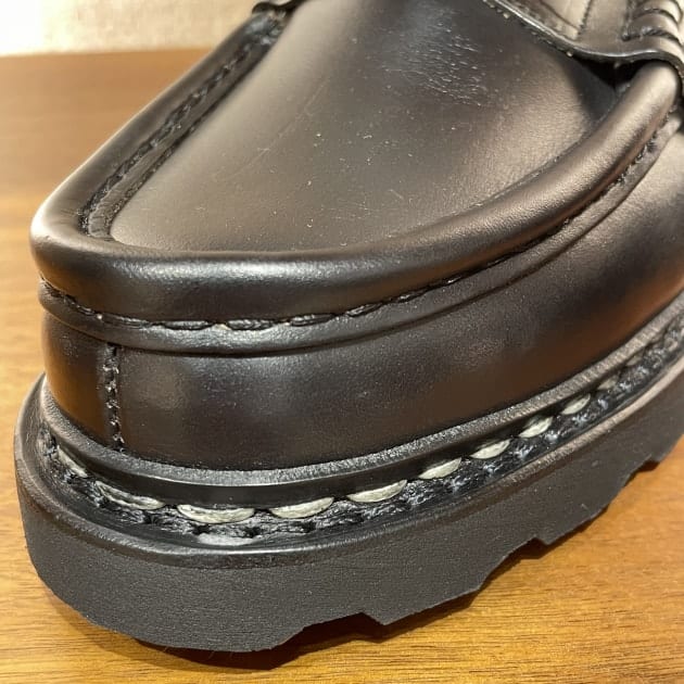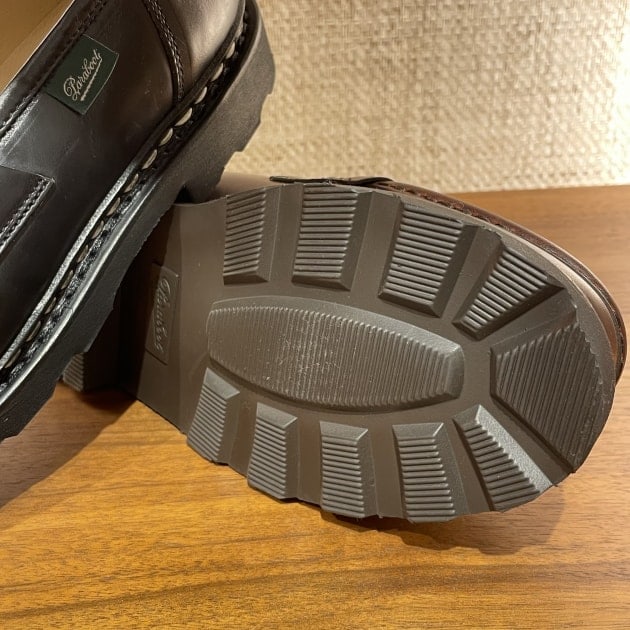 PARABOOT社が自社で生産しているこのラバーソール、雨なや雪でも滑りにくく耐久性も高い優れものです!