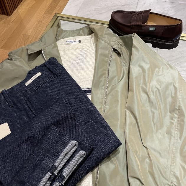 コーディネートは、スウィングトップにデニムスラックスを合わせたキレイめな春のカジュアルスタイルなんていかがでしょうか?
