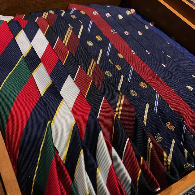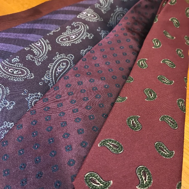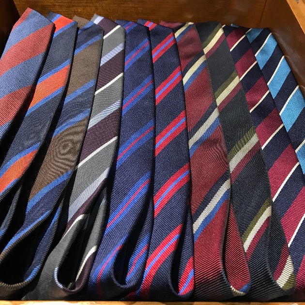 右手前のペイズリータイをHANAIとステキですな〜と話していたのですが、他の店から取寄せ依頼が入り、旅立ってしまいました…