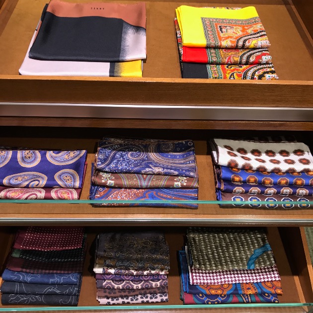 チーフやネッカチーフも色々とご用意しておりますので、ご来店お待ちしております。