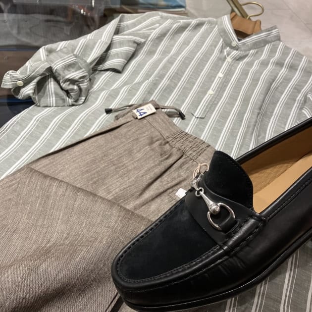 夏素材、麻をつかったスタイリングにも引き締まります。